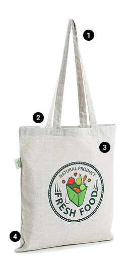 - Das Muster bezieht sich auf eine Tasche mit eigenem Logo oder Beispielgrafik.