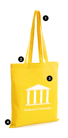 - Das Muster bezieht sich auf eine Tasche mit eigenem Logo oder Beispielgrafik.